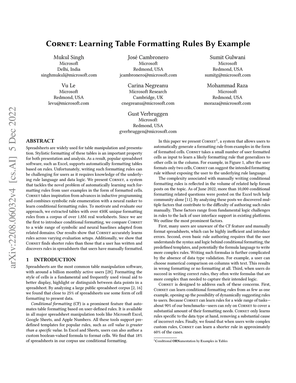 CORNET: Learning Table Formatting Rules By Example