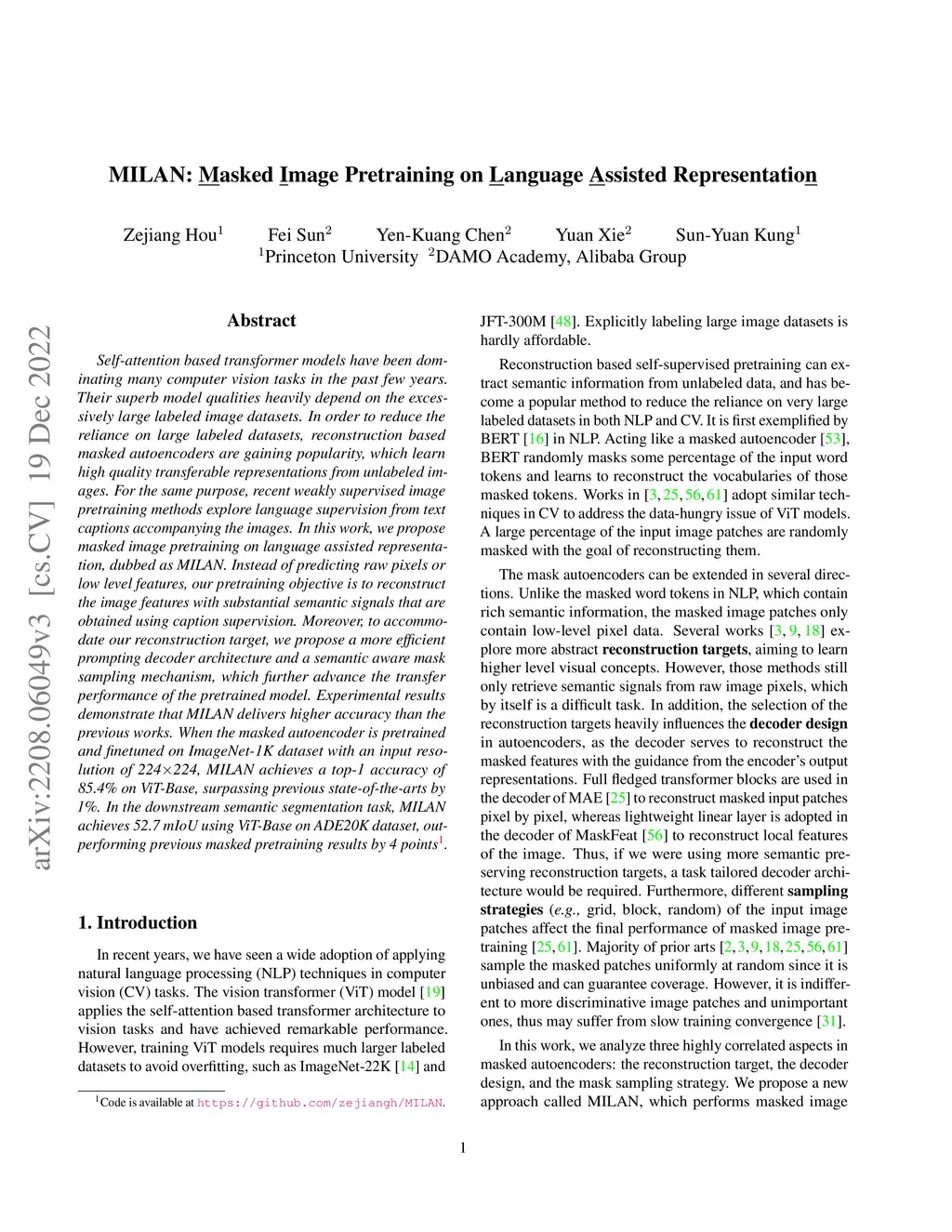 MILAN: Masked Image Pretraining on Language Assisted Representation