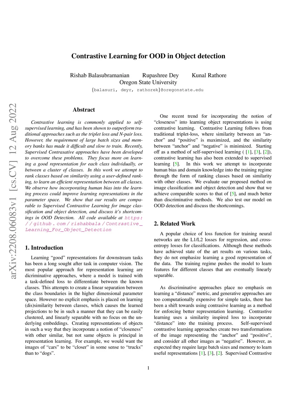 Contrastive Learning for OOD in Object detection