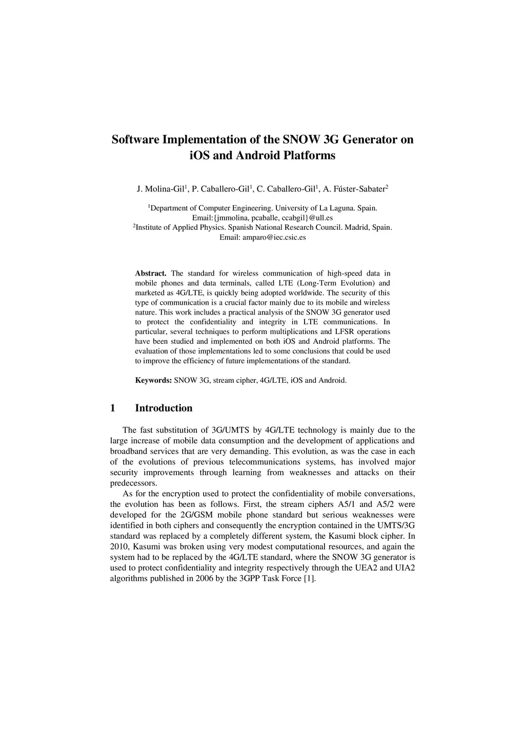 Software implementation of the SNOW 3G Generator on iOS and Android