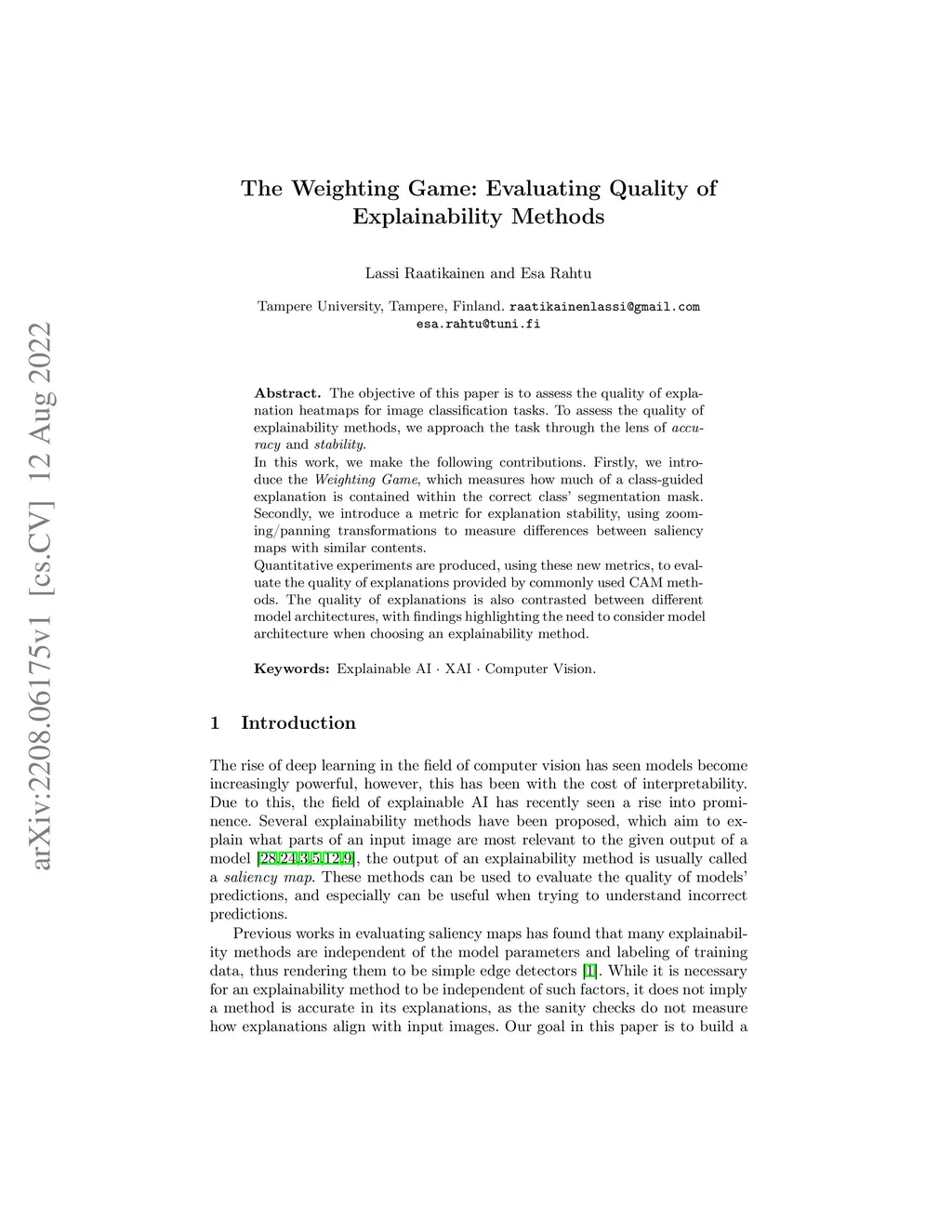The Weighting Game: Evaluating Quality of Explainability Methods