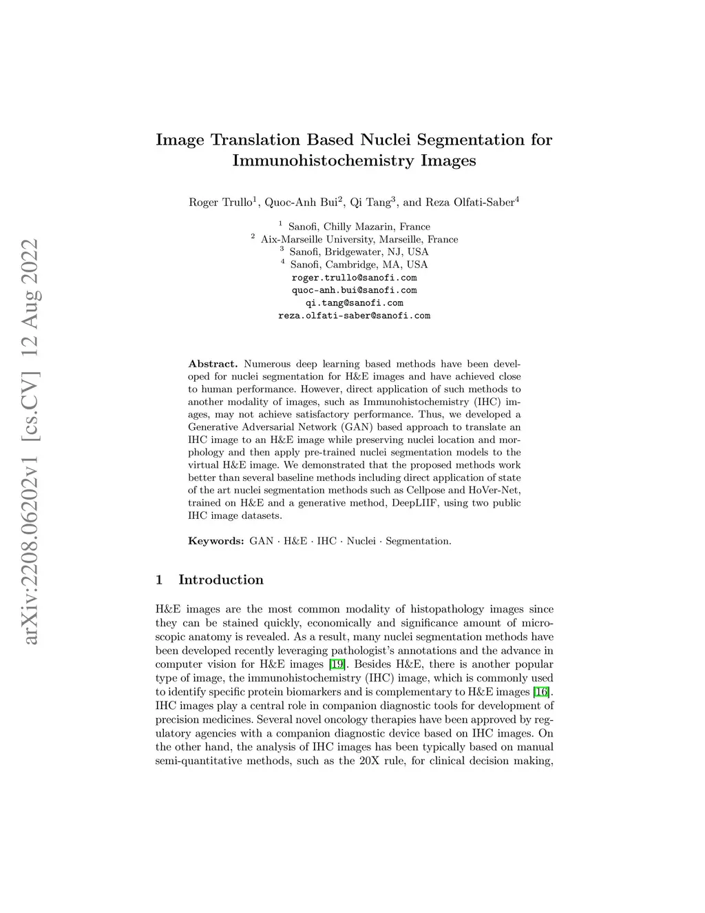 Image Translation Based Nuclei Segmentation for Immunohistochemistry