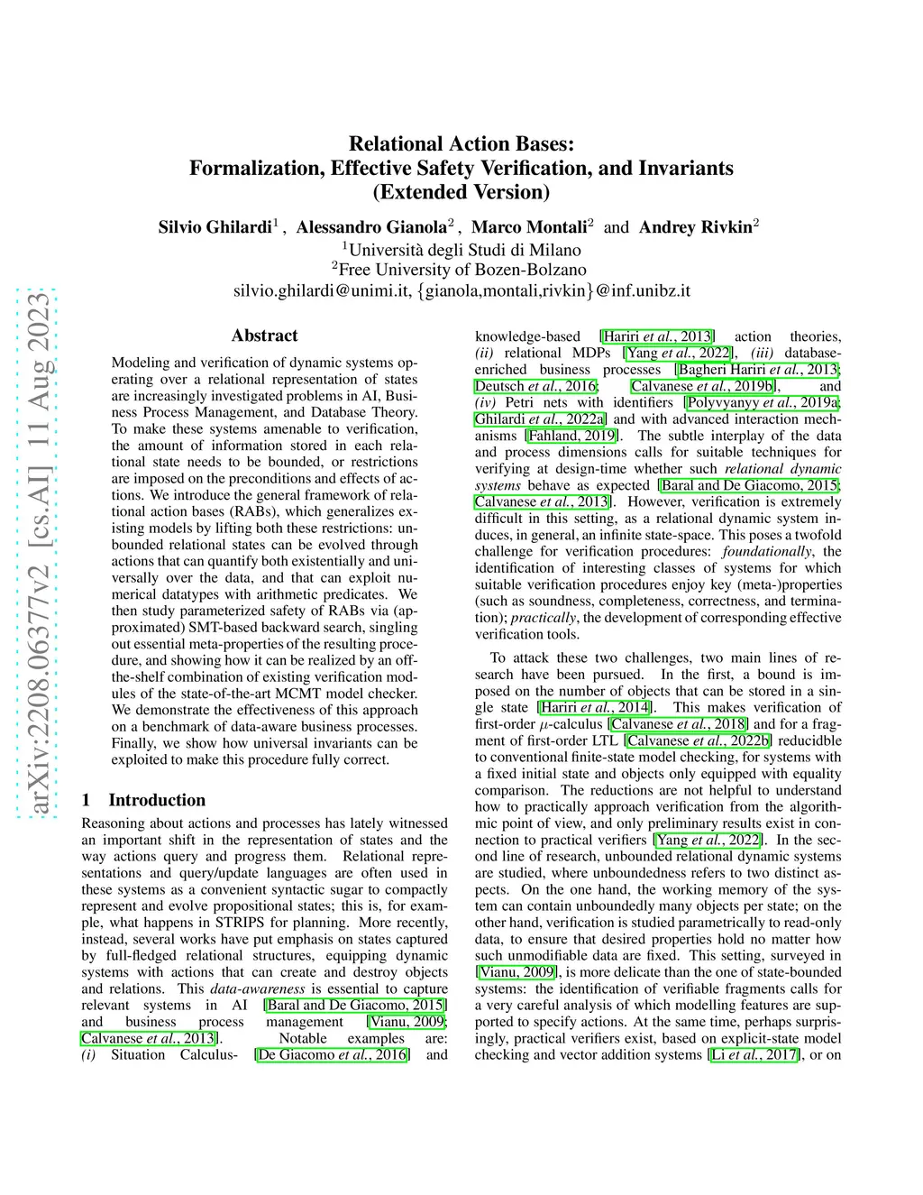 Relational Action Bases: Formalization, Effective Safety Verification,