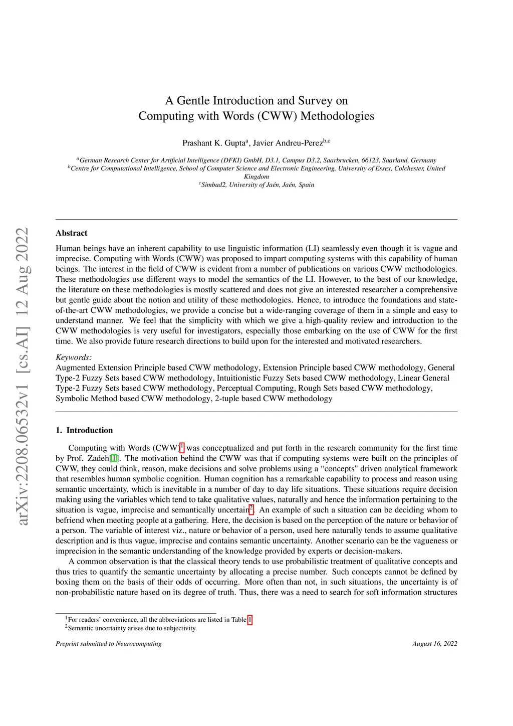 A Gentle Introduction and Survey on Computing with Words (CWW)