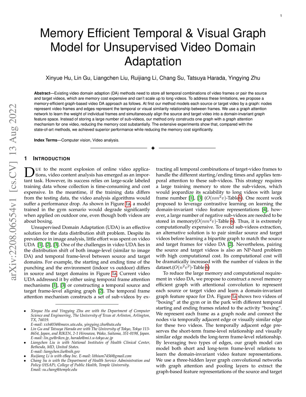 Memory Efficient Temporal & Visual Graph Model for Unsupervised Video