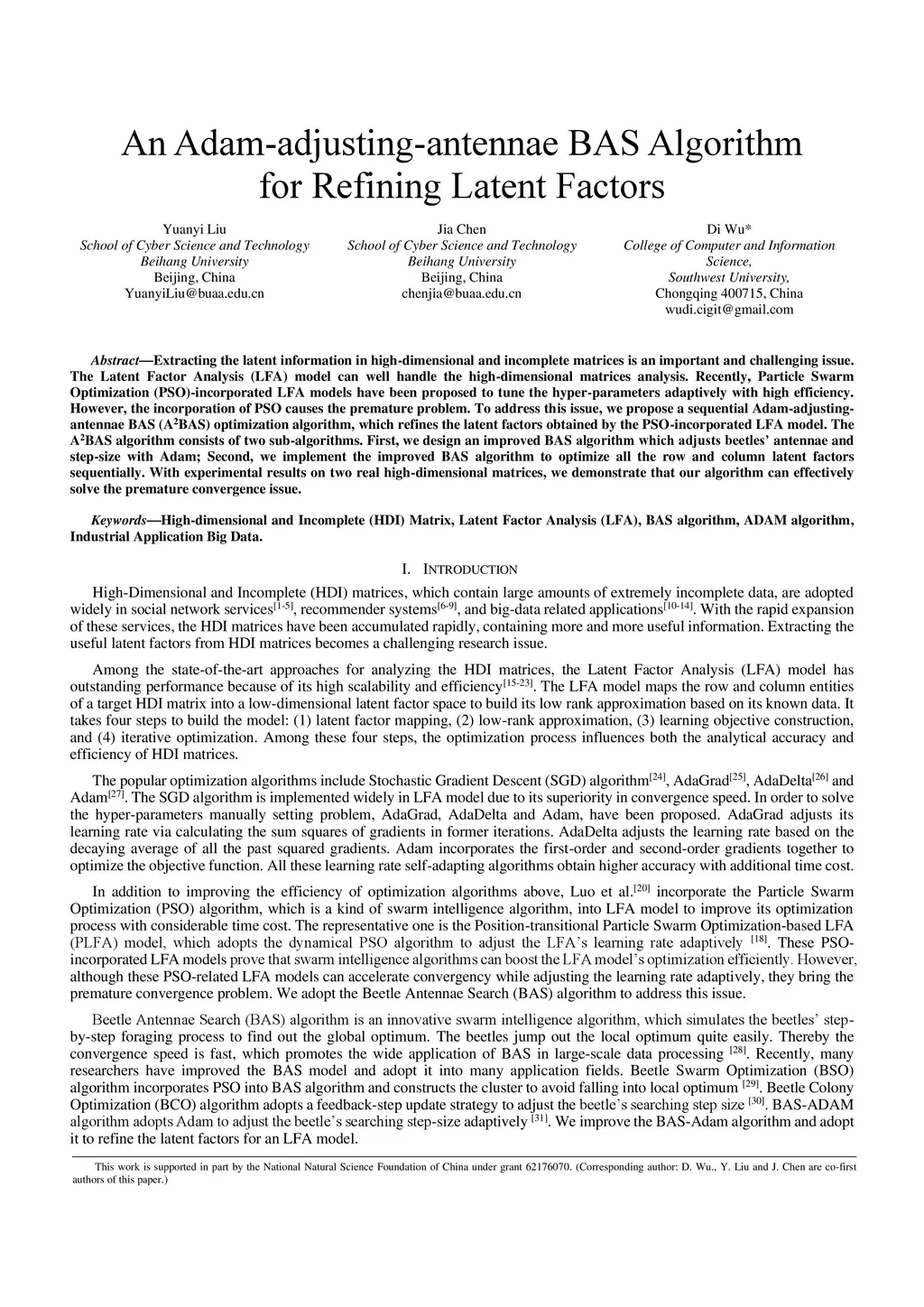 An Adam-adjusting-antennae BAS Algorithm for Refining Latent Factors