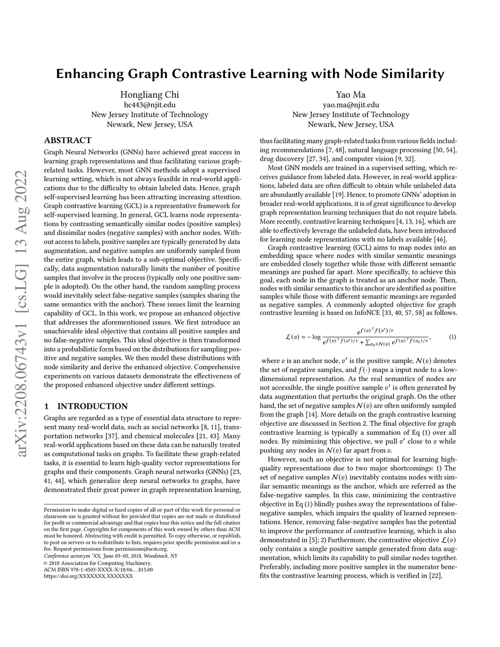 Graph Neural Networks (GNNs) have achieved great success in learning graph representations and thus facilitating various graph-related tasks. However, most GNN methods adopt a supervised learning setting, which is not always feasible in real-world applications due to the difficulty to obtain labeled data. Hence, graph self-supervised learning has been attracting increasing attention. Graph contrastive learning (GCL) is a representative framework for self-supervised learning. In general, GCL learns node representations by contrasting semantically similar nodes (positive samples) and dissimilar nodes (negative samples) with anchor nodes. Without access to labels, positive samples are typically generated by data augmentation, and negative samples are uniformly sampled from the entire graph, which leads to a sub-optimal objective. Specifically, data augmentation naturally limits the number of positive samples that involve in the process (typically only one positive sample is adopted). On the other hand, the random sampling process would inevitably select false-negative samples (samples sharing the same semantics with the anchor). These issues limit the learning capability of GCL. In this work, we propose an enhanced objective that addresses the aforementioned issues. We first introduce an unachievable ideal objective that contains all positive samples and no false-negative samples. This ideal objective is then transformed into a probabilistic form based on the distributions for sampling positive and negative samples. We then model these distributions with node similarity and derive the enhanced objective. Comprehensive experiments on various datasets demonstrate the effectiveness of the proposed enhanced objective under different settings.