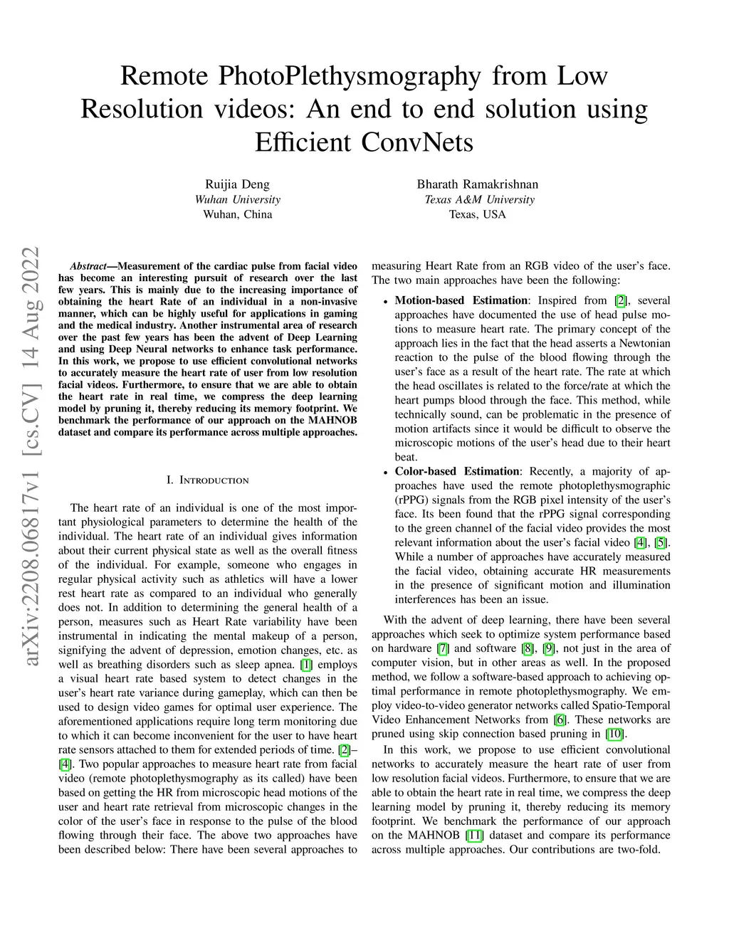 Measurement of the cardiac pulse from facial video has become an interesting pursuit of research over the last few years. This is mainly due to the increasing importance of obtaining the heart rate of an individual in a non-invasive manner, which can be highly useful for applications in gaming and the medical industry. Another instrumental area of research over the past few years has been the advent of Deep Learning and using Deep Neural networks to enhance task performance. In this work, we propose to use efficient convolutional networks to accurately measure the heart rate of user from low resolution facial videos. Furthermore, to ensure that we are able to obtain the heart rate in real time, we compress the deep learning model by pruning it, thereby reducing its memory footprint. We benchmark the performance of our approach on the MAHNOB dataset and compare its performance across multiple approaches.