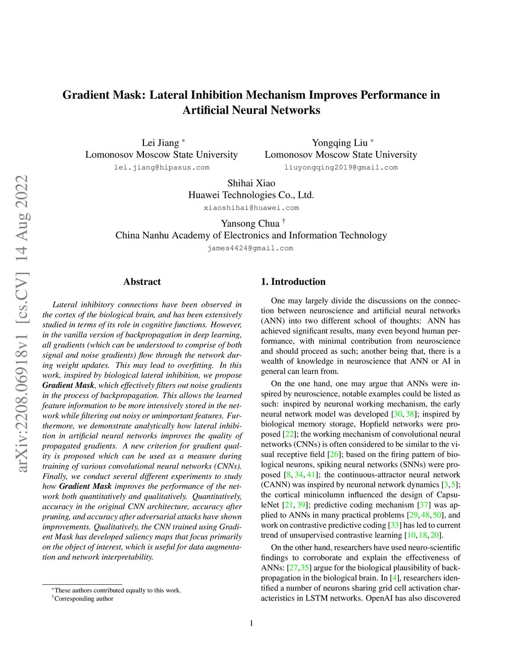 Gradient Mask: Lateral Inhibition Mechanism Improves Performance in