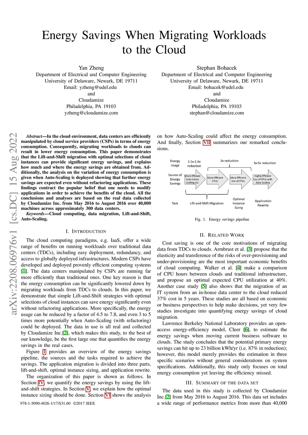 In the cloud environment, data centers are efficiently manipulated by cloud service providers (CSPs) in terms of energy consumption. Consequently, migrating workloads to clouds can result in lower energy consumption. This paper demonstrates that the Lift-and-Shift migration with optimal selections of cloud instances can provide significant energy savings, and explains how much and where the energy savings are obtained from. Additionally, the analysis on the variation of energy consumption is given when Auto-Scaling is deployed showing that further energy savings are expected even without refactoring applications. All the conclusions and analyses are based on the real data collected by Cloudamize Inc. from May 2016 to August 2016 over 40,000 machines across approximately 300 data centers.
