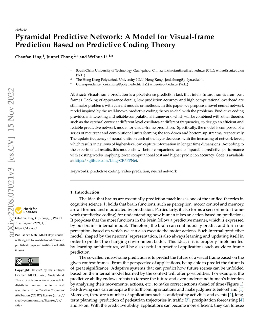 Pyramidal Predictive Network: A Model for Visual-frame Prediction Based
