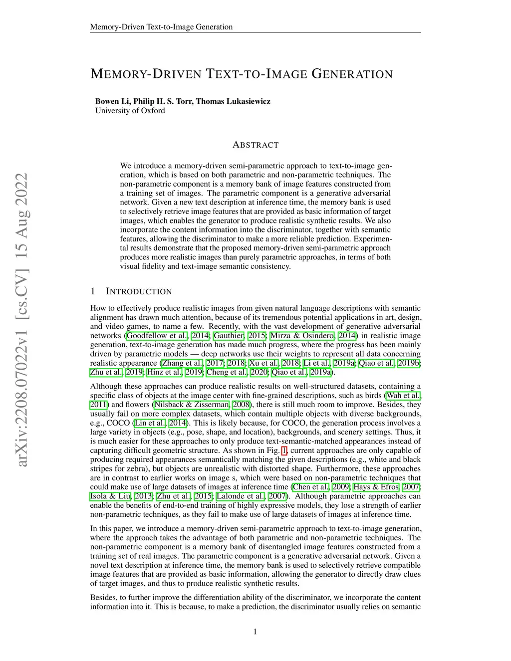 Memory-Driven Text-to-Image Generation
