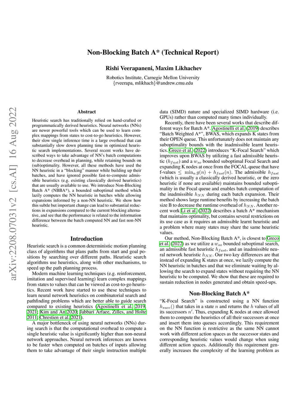 Heuristic search has traditionally relied on hand-crafted or programmatically derived heuristics. Neural networks (NNs) are newer powerful tools which can be used to learn complex mappings from states to cost-to-go heuristics. However, their slow single inference time is a large overhead that can substantially slow down planning time in optimized heuristic search implementations. Several recent works have described ways to take advantage of NN's batch computations to decrease overhead in planning, while retaining bounds on (sub)optimality. However, all these methods have used the NN heuristic in a "blocking" manner while building up their batches, and have ignored possible fast-to-compute admissible heuristics (e.g. existing classically derived heuristics) that are usually available to use. We introduce Non-Blocking Batch A* (NBBA*), a bounded suboptimal method which lazily computes the NN heuristic in batches while allowing expansions informed by a non-NN heuristic. We show how this subtle but important change can lead to substantial reductions in expansions compared to the current blocking alternative, and see that the performance is related to the information difference between the batch computed NN and fast non-NN heuristic.