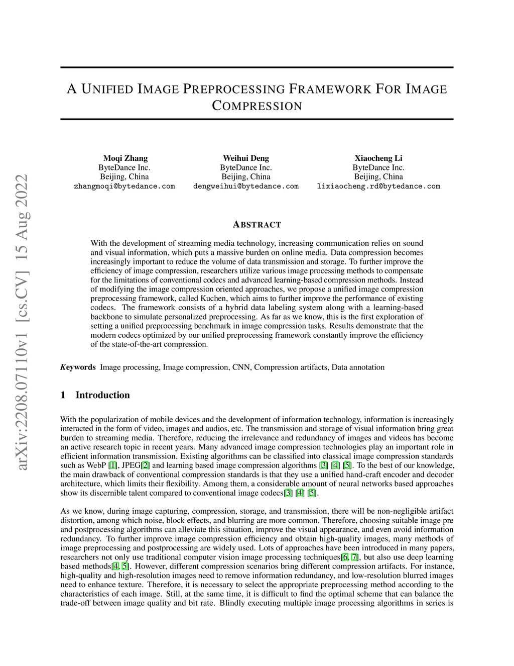 With the development of streaming media technology, increasing communication relies on sound and visual information, which puts a massive burden on online media. Data compression becomes increasingly important to reduce the volume of data transmission and storage. To further improve the efficiency of image compression, researchers utilize various image processing methods to compensate for the limitations of conventional codecs and advanced learning-based compression methods. Instead of modifying the image compression oriented approaches, we propose a unified image compression preprocessing framework, called Kuchen, which aims to further improve the performance of existing codecs. The framework consists of a hybrid data labeling system along with a learning-based backbone to simulate personalized preprocessing. As far as we know, this is the first exploration of setting a unified preprocessing benchmark in image compression tasks. Results demonstrate that the modern codecs optimized by our unified preprocessing framework constantly improve the efficiency of the state-of-the-art compression.
