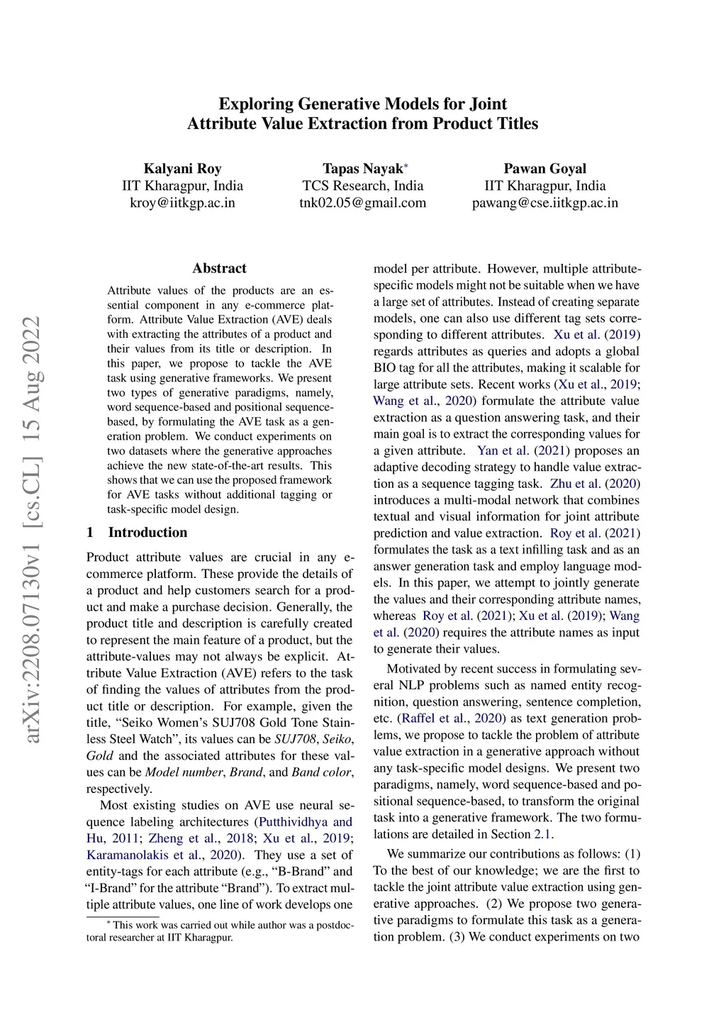 Exploring Generative Models for Joint Attribute Value Extraction from