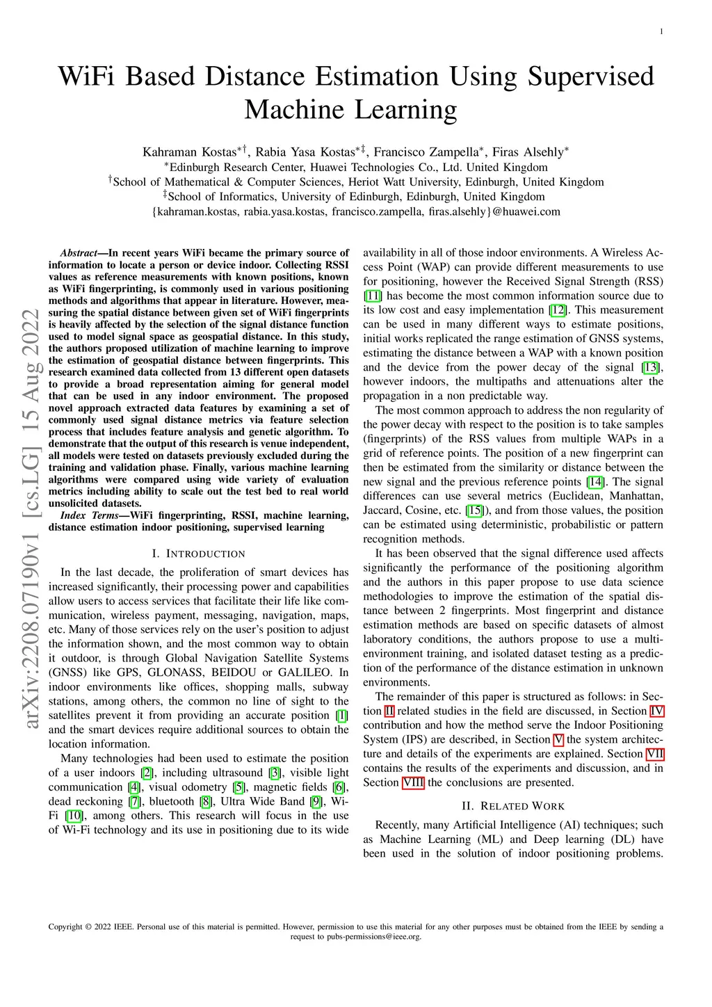 WiFi Based Distance Estimation Using Supervised Machine Learning