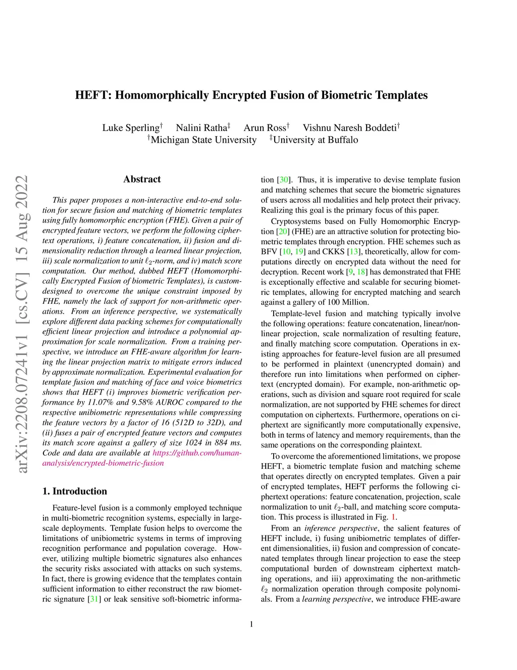 HEFT: Homomorphically Encrypted Fusion of Biometric Templates
