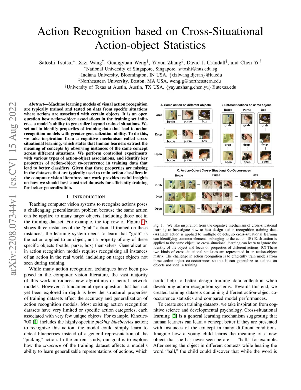 Action Recognition based on Cross-Situational Action-object Statistics