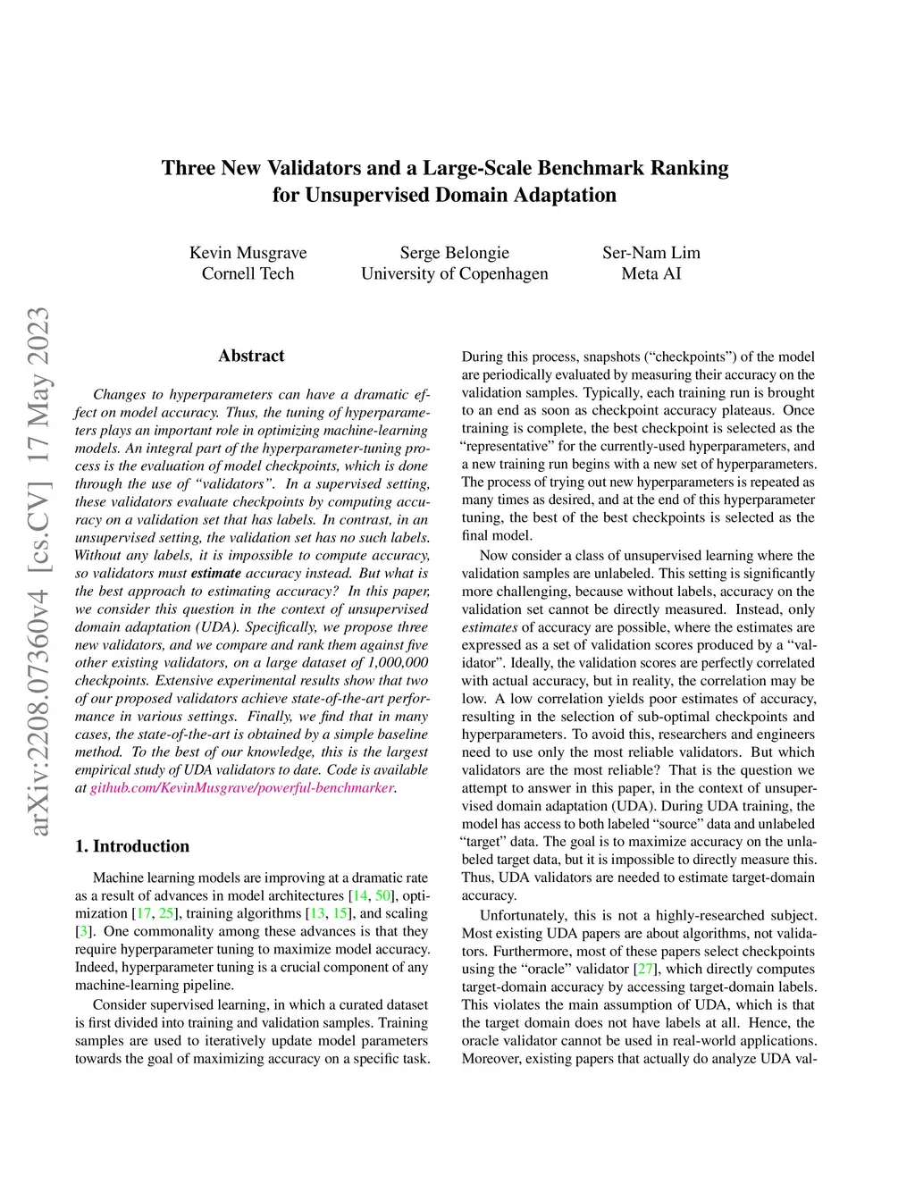 Three New Validators and a Large-Scale Benchmark Ranking for Unsupervised Domain Adaptation