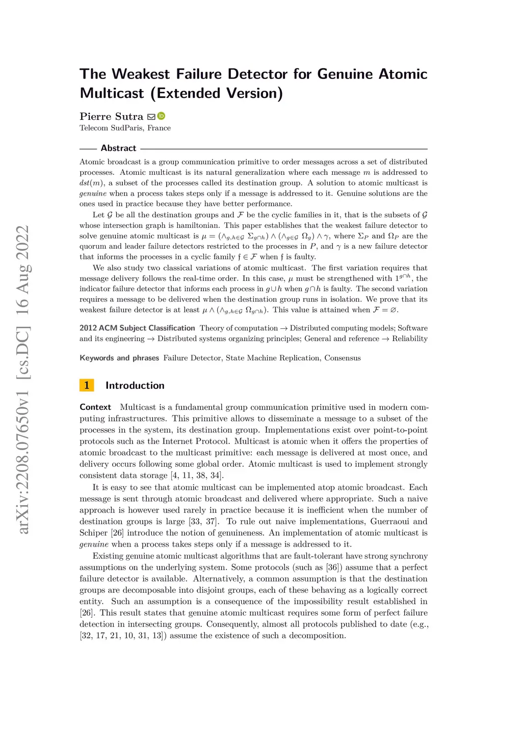 The Weakest Failure Detector for Genuine Atomic Multicast (Extended