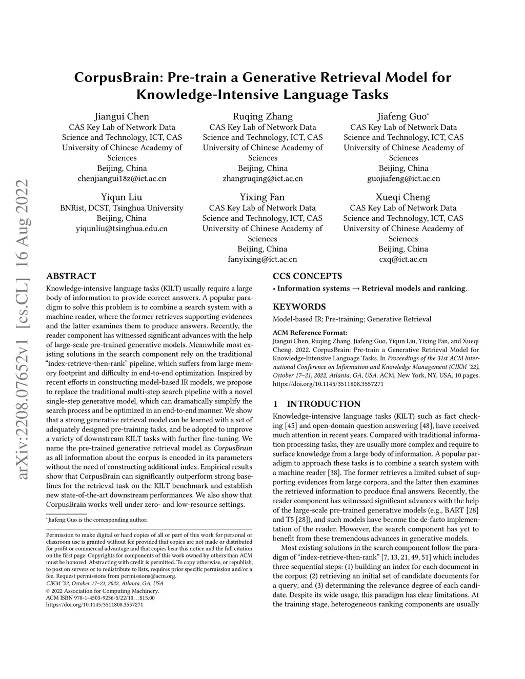 CorpusBrain: Pre-train a Generative Retrieval Model for