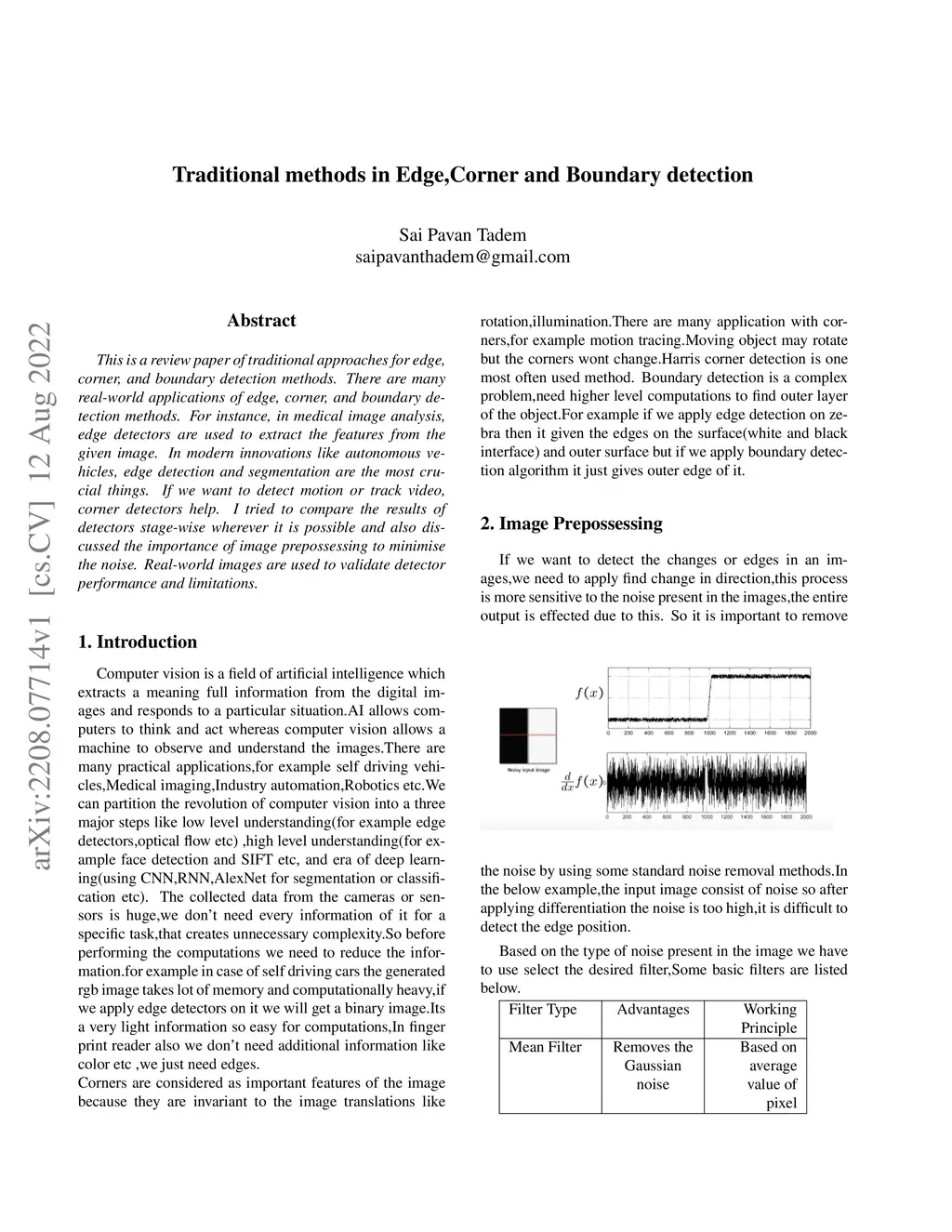 Traditional methods in Edge, Corner and Boundary detection