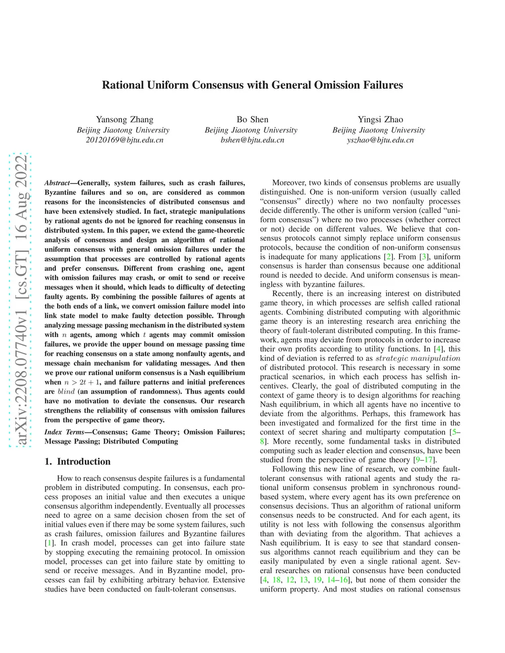 Generally, system failures, such as crash failures, Byzantine failures and so on, are considered as common reasons for the inconsistencies of distributed consensus and have been extensively studied. In fact, strategic manipulations by rational agents do not be ignored for reaching consensus in distributed system. In this paper, we extend the game-theoretic analysis of consensus and design an algorithm of rational uniform consensus with general omission failures under the assumption that processes are controlled by rational agents and prefer consensus. Different from crashing one, agent with omission failures may crash, or omit to send or receive messages when it should, which leads to difficulty of detecting faulty agents. By combining the possible failures of agents at the both ends of a link, we convert omission failure model into link state model to make faulty detection possible. Through analyzing message passing mechanism in the distributed system with n agents, among which t agents may commit omission failures, we provide the upper bound on message passing time for reaching consensus on a state among nonfaulty agents, and message chain mechanism for validating messages. And then we prove our rational uniform consensus is a Nash equilibrium when n>2t+1, and failure patterns and initial preferences are blind (an assumption of randomness). Thus agents could have no motivation to deviate the consensus. Our research strengthens the reliability of consensus with omission failures from the perspective of game theory.