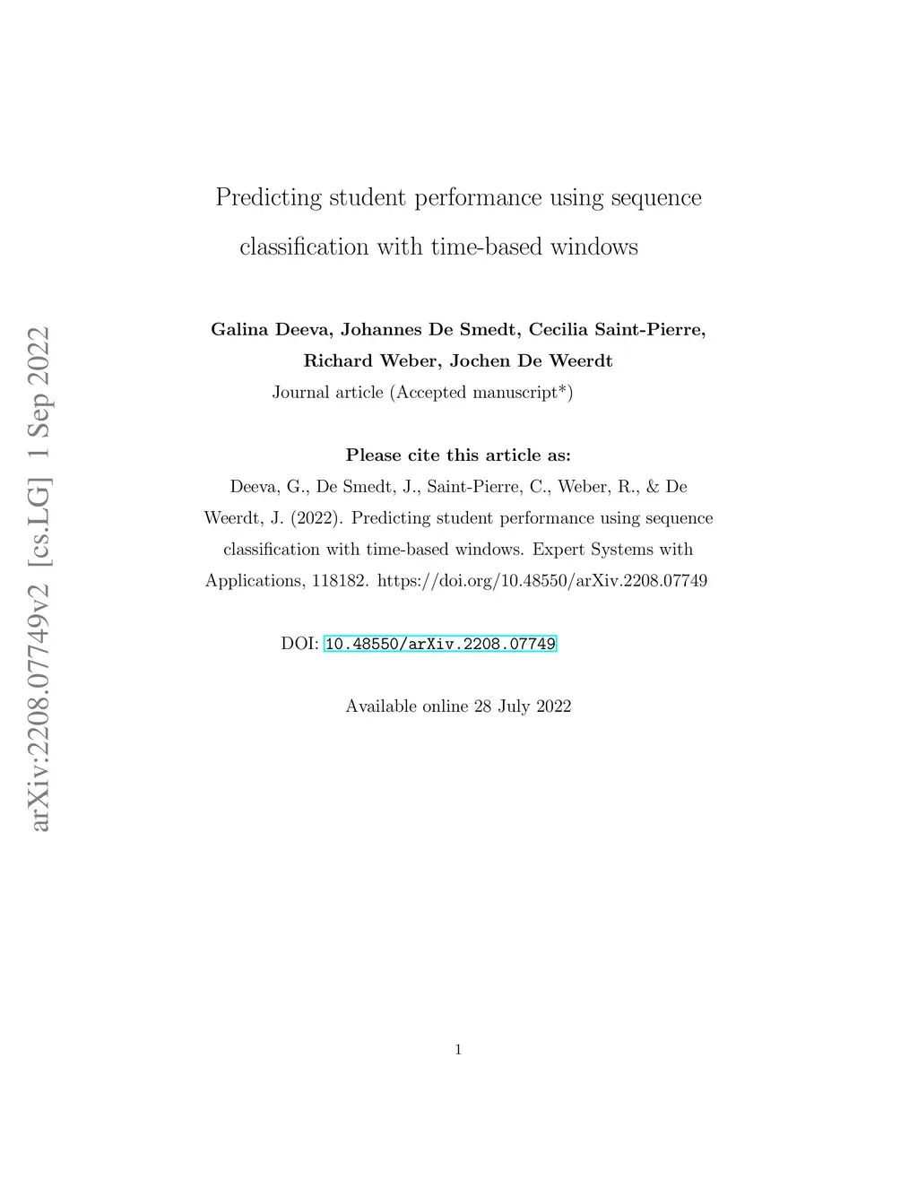 Predicting student performance using sequence classification with time-based windows