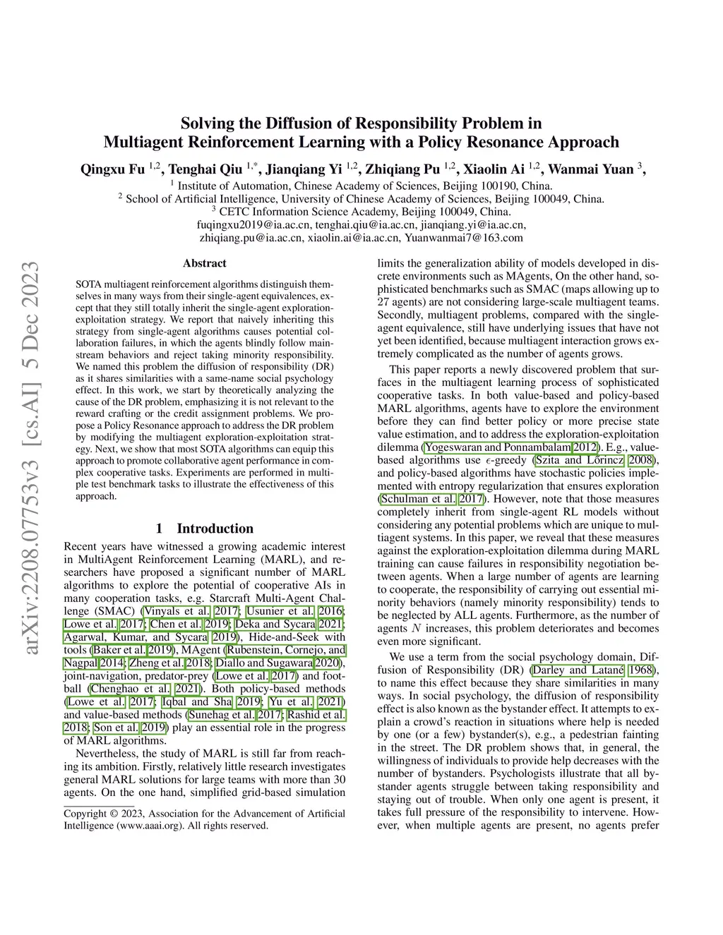 A Policy Resonance Approach to Solve the Problem of Responsibility