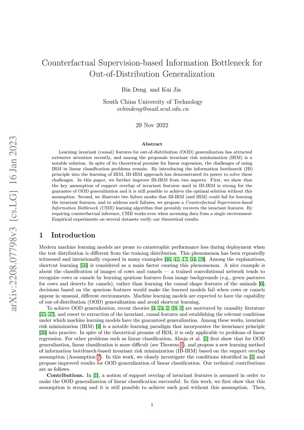 Counterfactual Supervision-based Information Bottleneck for