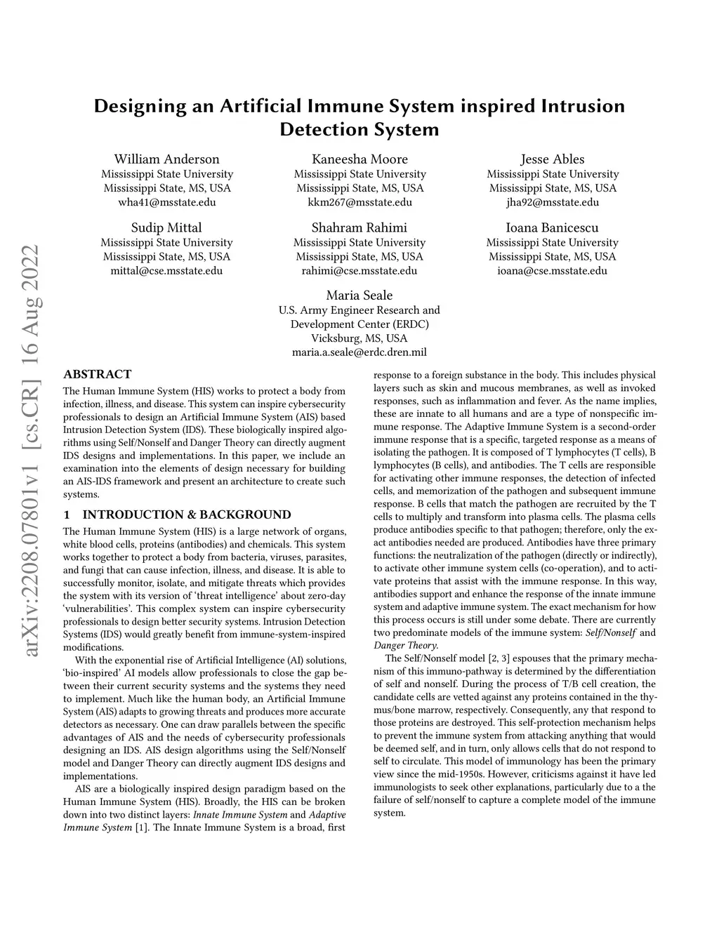 The Human Immune System (HIS) works to protect a body from infection, illness, and disease. This system can inspire cybersecurity professionals to design an Artificial Immune System (AIS) based Intrusion Detection System (IDS). These biologically inspired algorithms using Self/Nonself and Danger Theory can directly augmentIDS designs and implementations. In this paper, we include an examination into the elements of design necessary for building an AIS-IDS framework and present an architecture to create such systems.