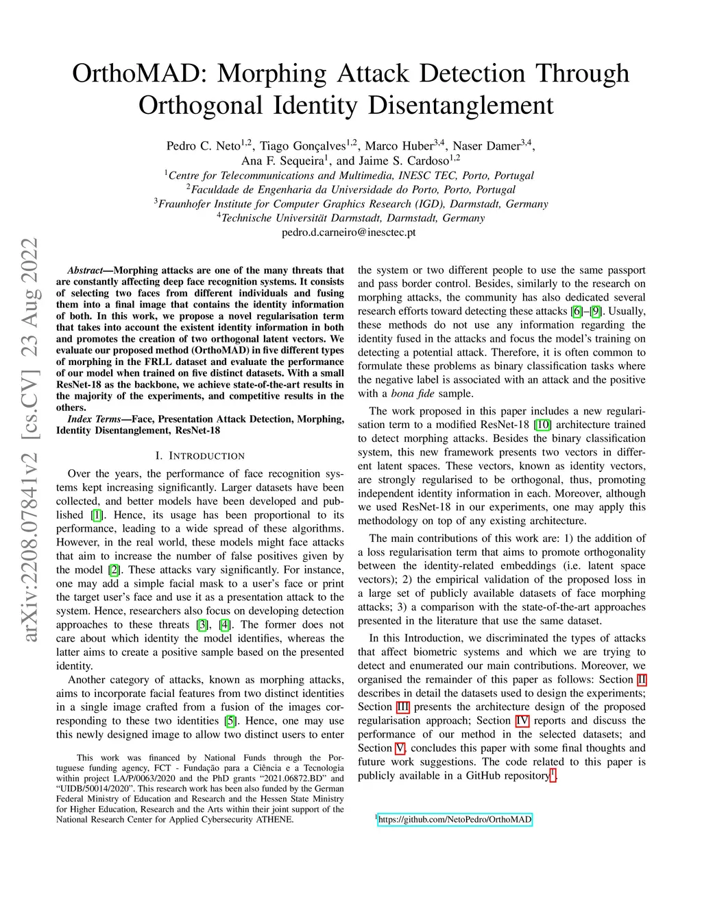 OrthoMAD: Morphing Attack Detection Through Orthogonal Identity