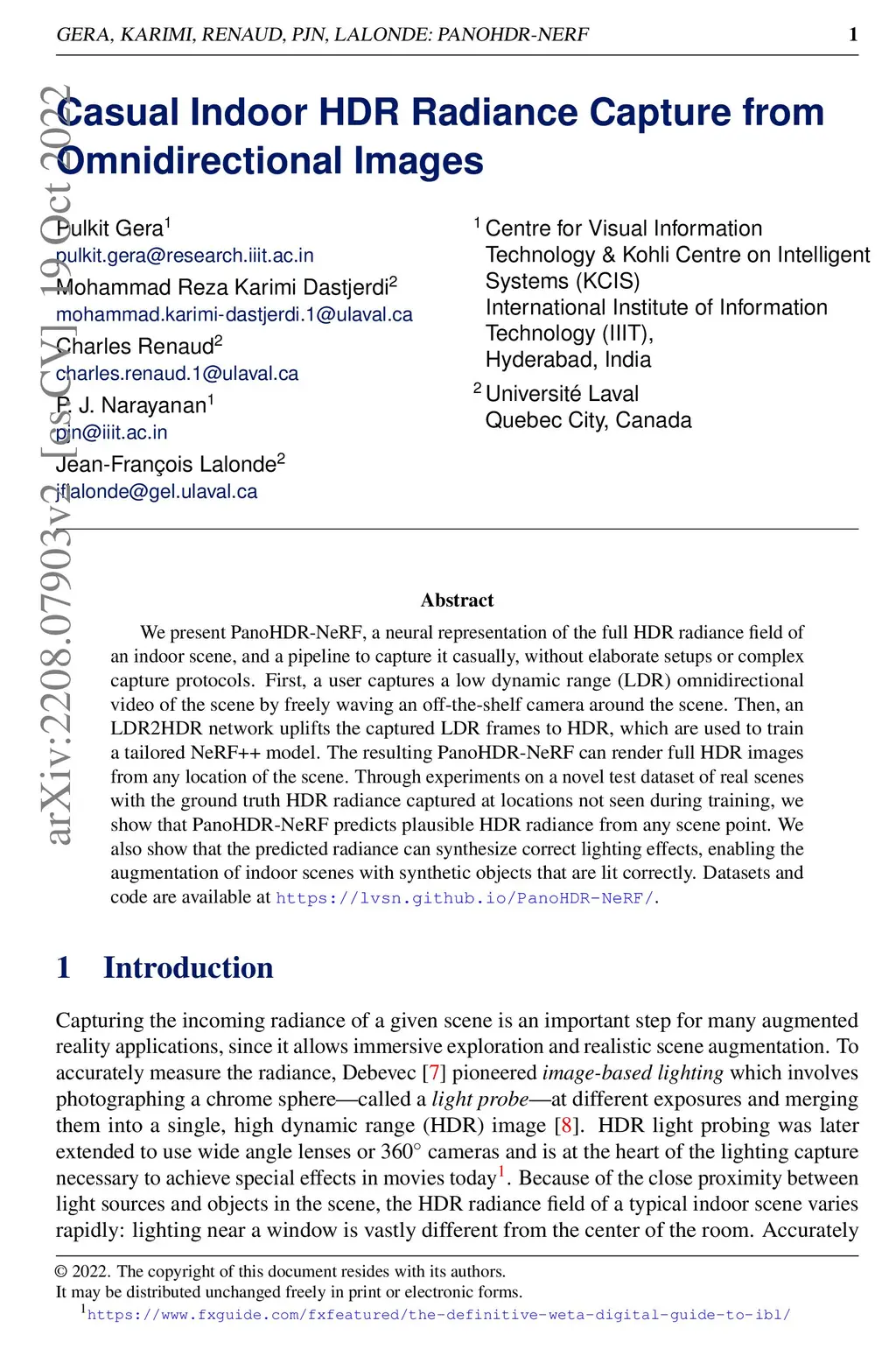 Casual Indoor HDR Radiance Capture from Omnidirectional Images