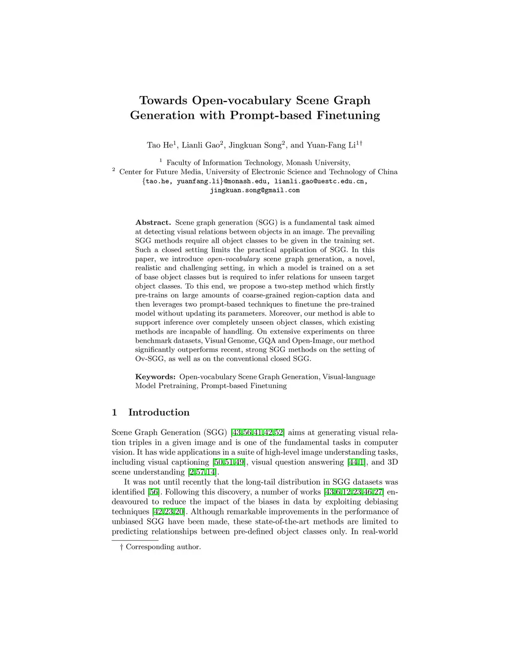 Towards Open-vocabulary Scene Graph Generation with Prompt-based Finetuning