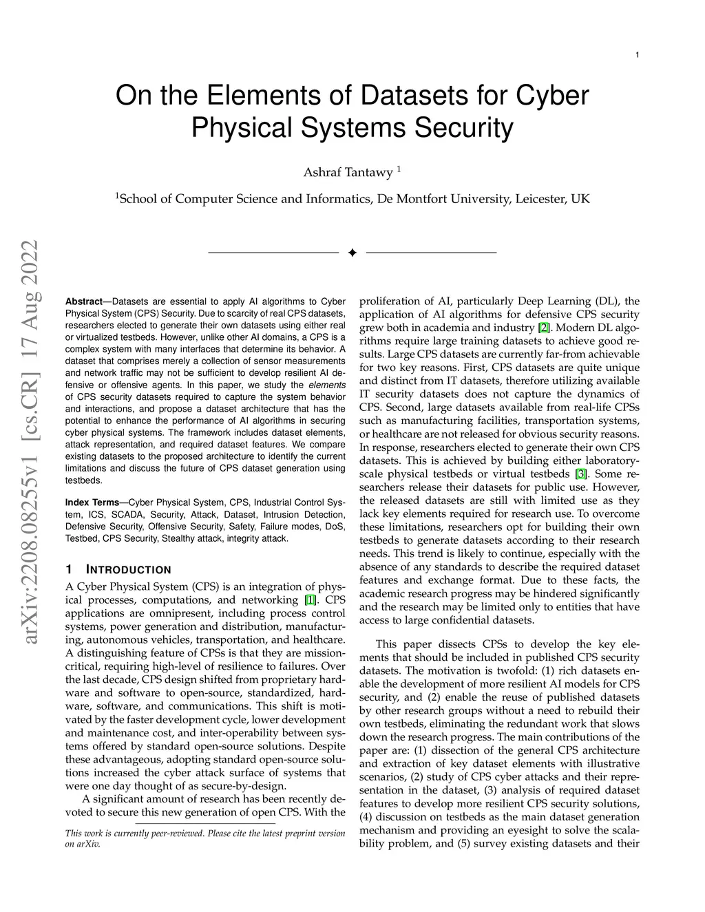 On the Elements of Datasets for Cyber Physical Systems Security