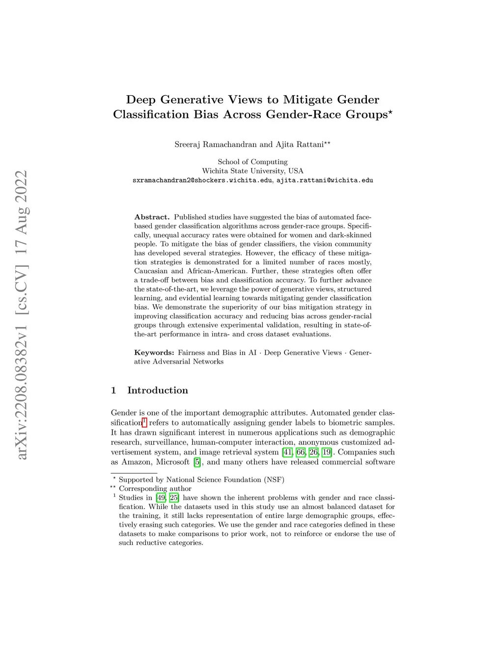 Deep Generative Views to Mitigate Gender Classification Bias Across