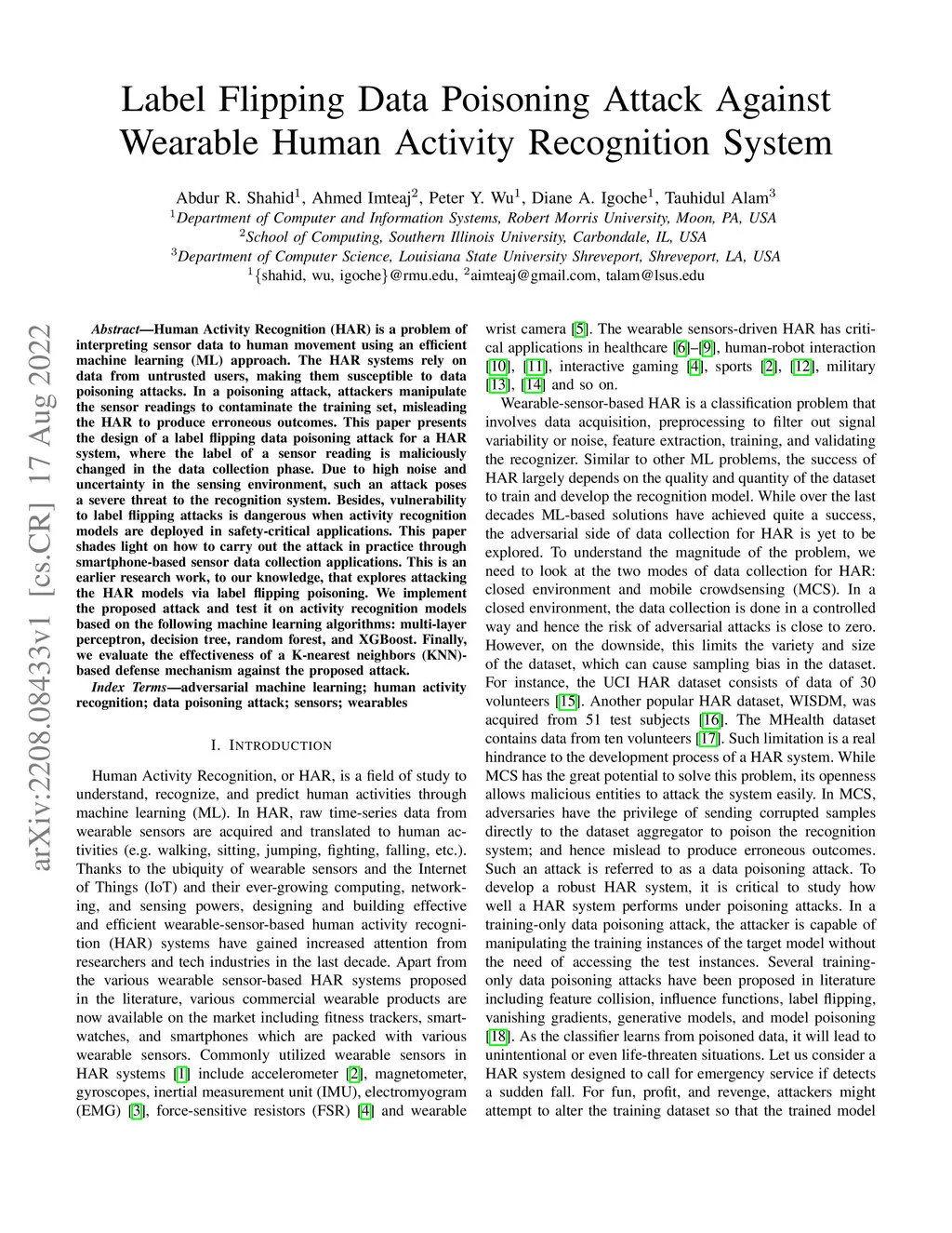 Label Flipping Data Poisoning Attack Against Wearable Human Activity
