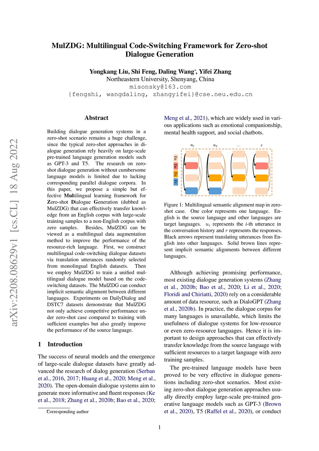MulZDG: Multilingual Code-Switching Framework for Zero-shot Dialogue