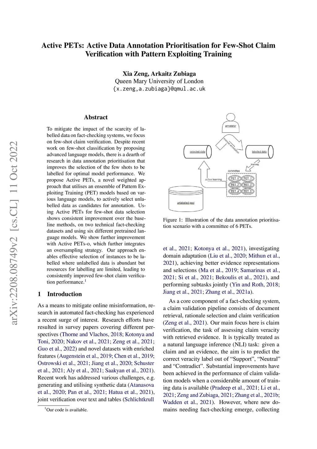Active PETs: Active Data Annotation Prioritisation for Few-Shot Claim