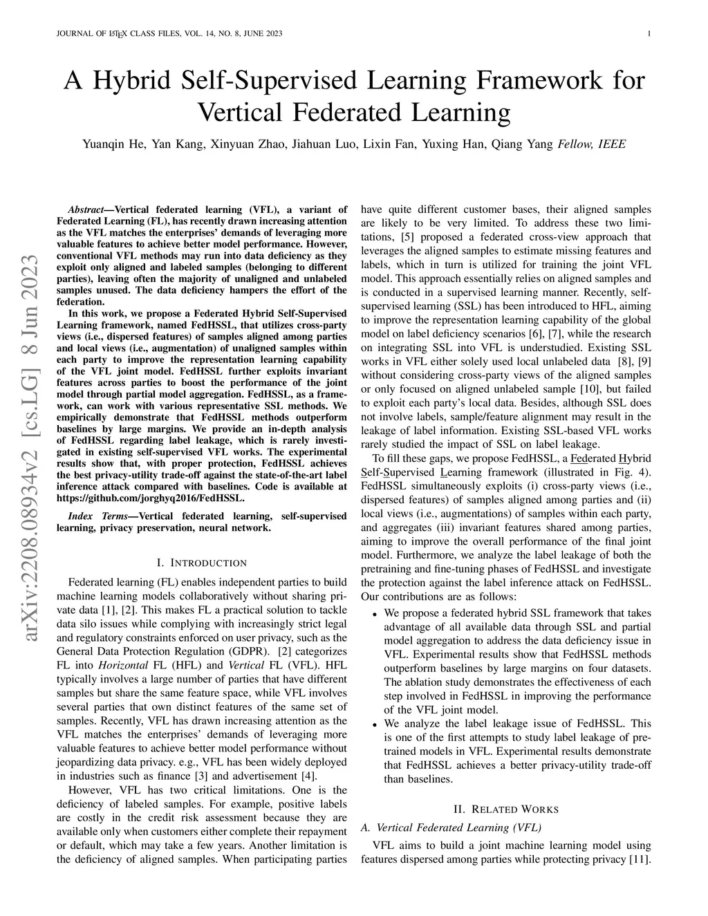 A Hybrid Self-Supervised Learning Framework for Vertical Federated