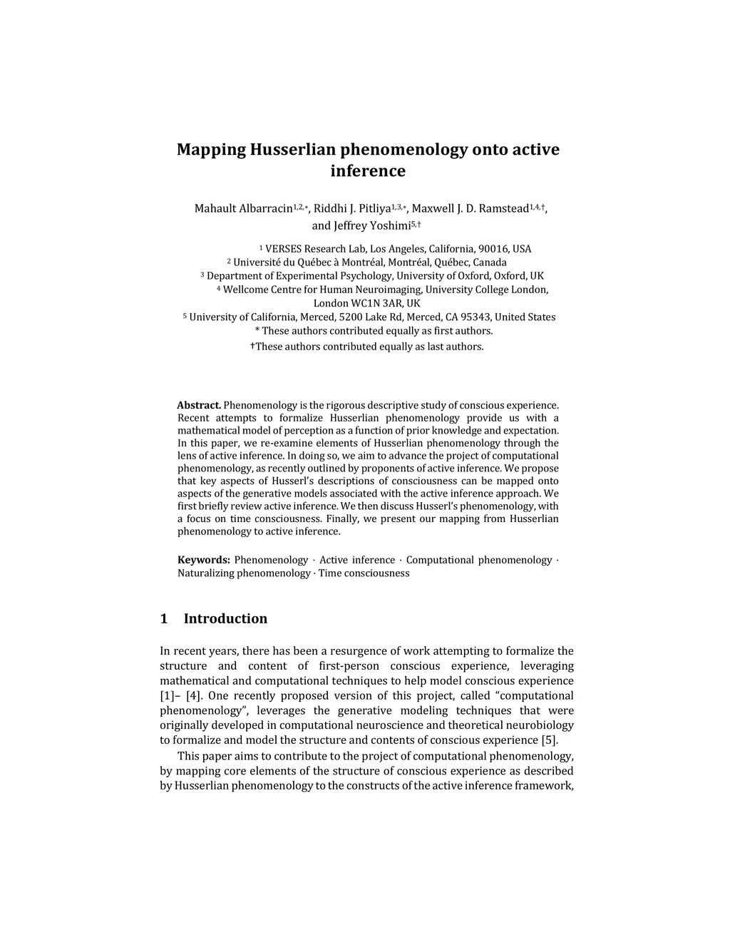 Mapping Husserlian phenomenology onto active inference
