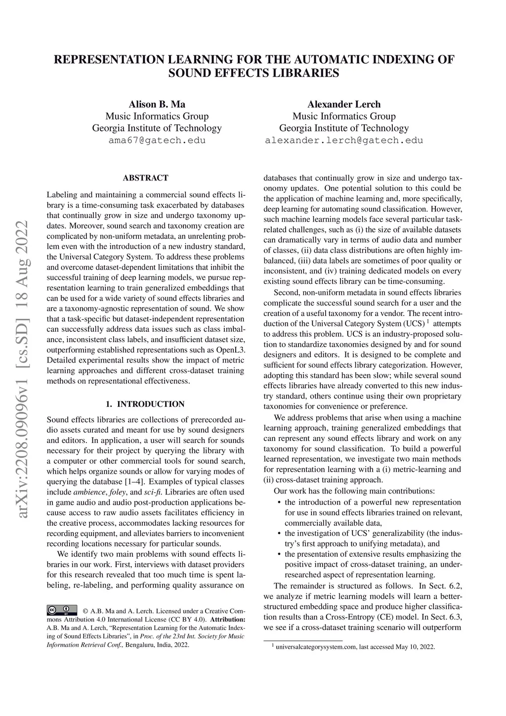 Representation Learning for the Automatic Indexing of Sound Effects