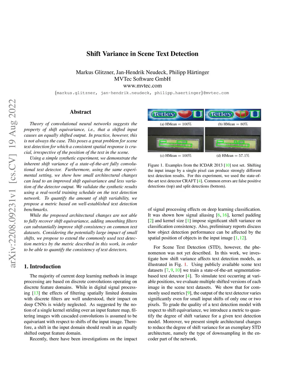 Theory of convolutional neural networks suggests the property of shift equivariance, i.e., that a shifted input causes an equally shifted output. In practice, however, this is not always the case. This poses a great problem for scene text detection for which a consistent spatial response is crucial, irrespective of the position of the text in the scene. Using a simple synthetic experiment, we demonstrate the inherent shift variance of a state-of-the-art fully convolutional text detector. Furthermore, using the same experimental setting, we show how small architectural changes can lead to an improved shift equivariance and less variation of the detector output. We validate the synthetic results using a real-world training schedule on the text detection network. To quantify the amount of shift variability, we propose a metric based on well-established text detection benchmarks. While the proposed architectural changes are not able to fully recover shift equivariance, adding smoothing filters can substantially improve shift consistency on common text datasets. Considering the potentially large impact of small shifts, we propose to extend the commonly used text detection metrics by the metric described in this work, in order to be able to quantify the consistency of text detectors.