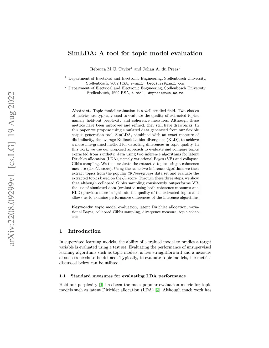 SimLDA: A tool for topic model evaluation
