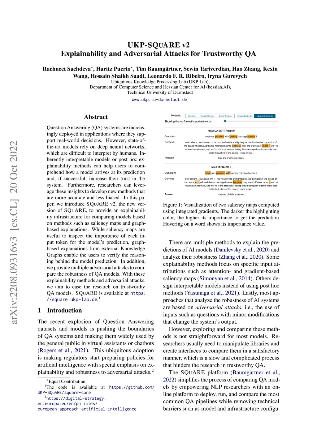 UKP-SQuARE v2 Explainability and Adversarial Attacks for Trustworthy QA