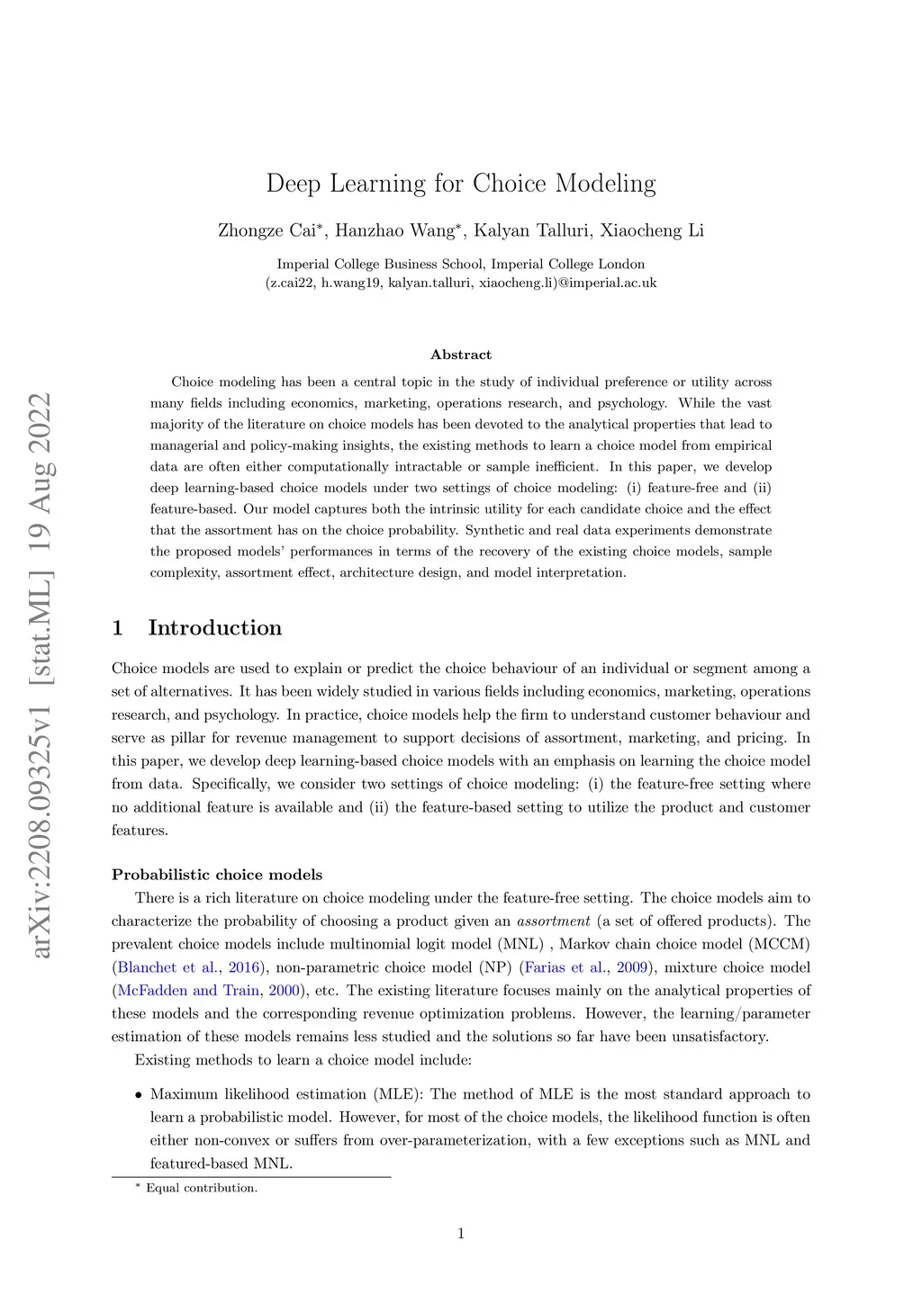 Deep Learning for Choice Modeling