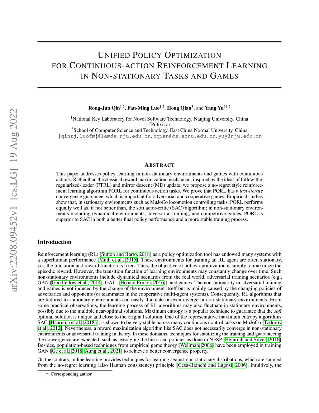 Unified Policy Optimization for Continuous-action Reinforcement Learning