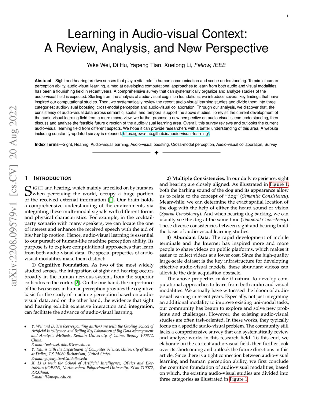 Learning in Audio-visual Context: A Review, Analysis, and New