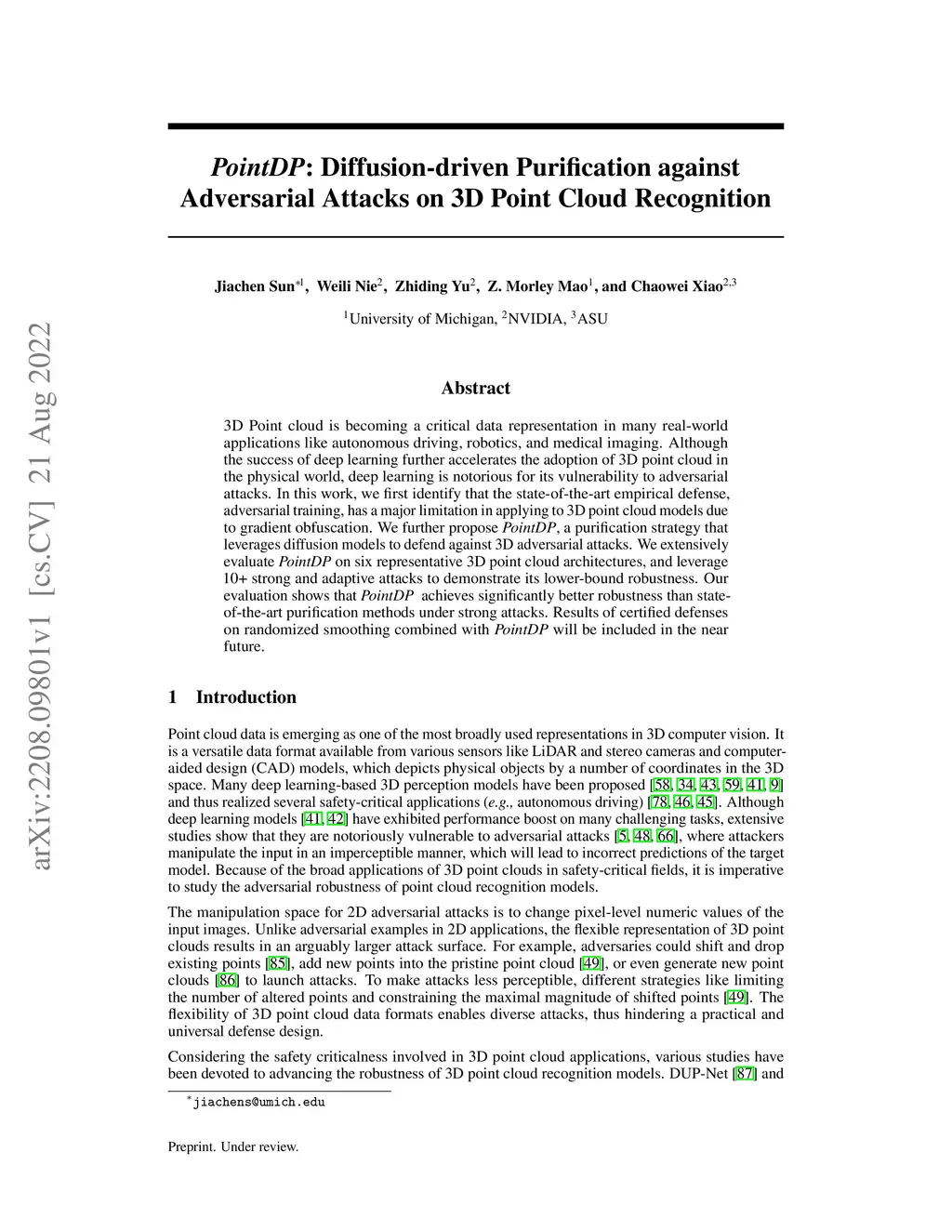 PointDP: Diffusion-driven Purification against Adversarial Attacks on 3D