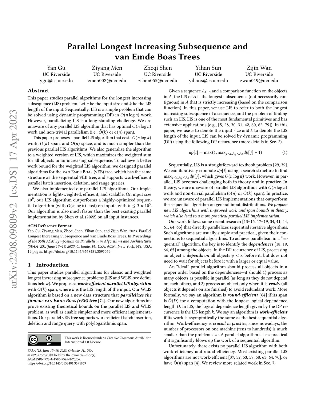 Parallel Longest Increasing Subsequence and van Emde Boas Trees
